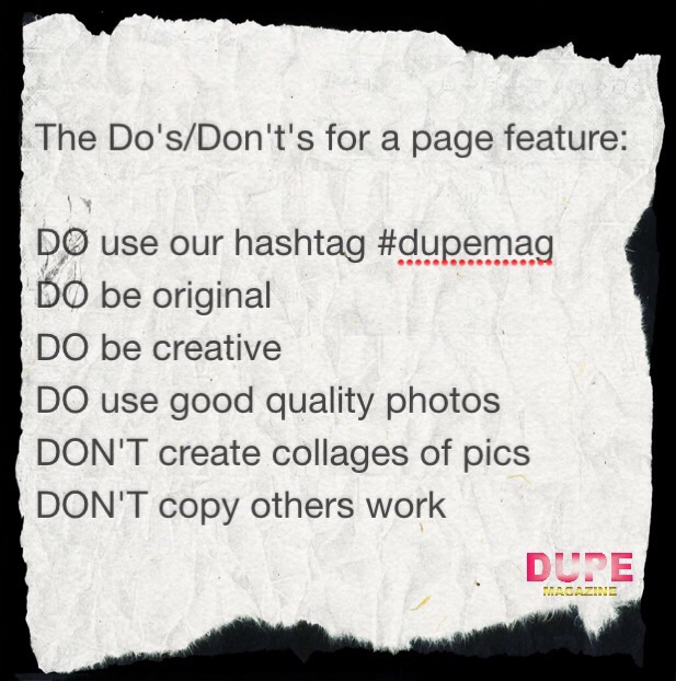Please email us - Dupemag@gmail.com - with the following details if you would like to have your work submitted: